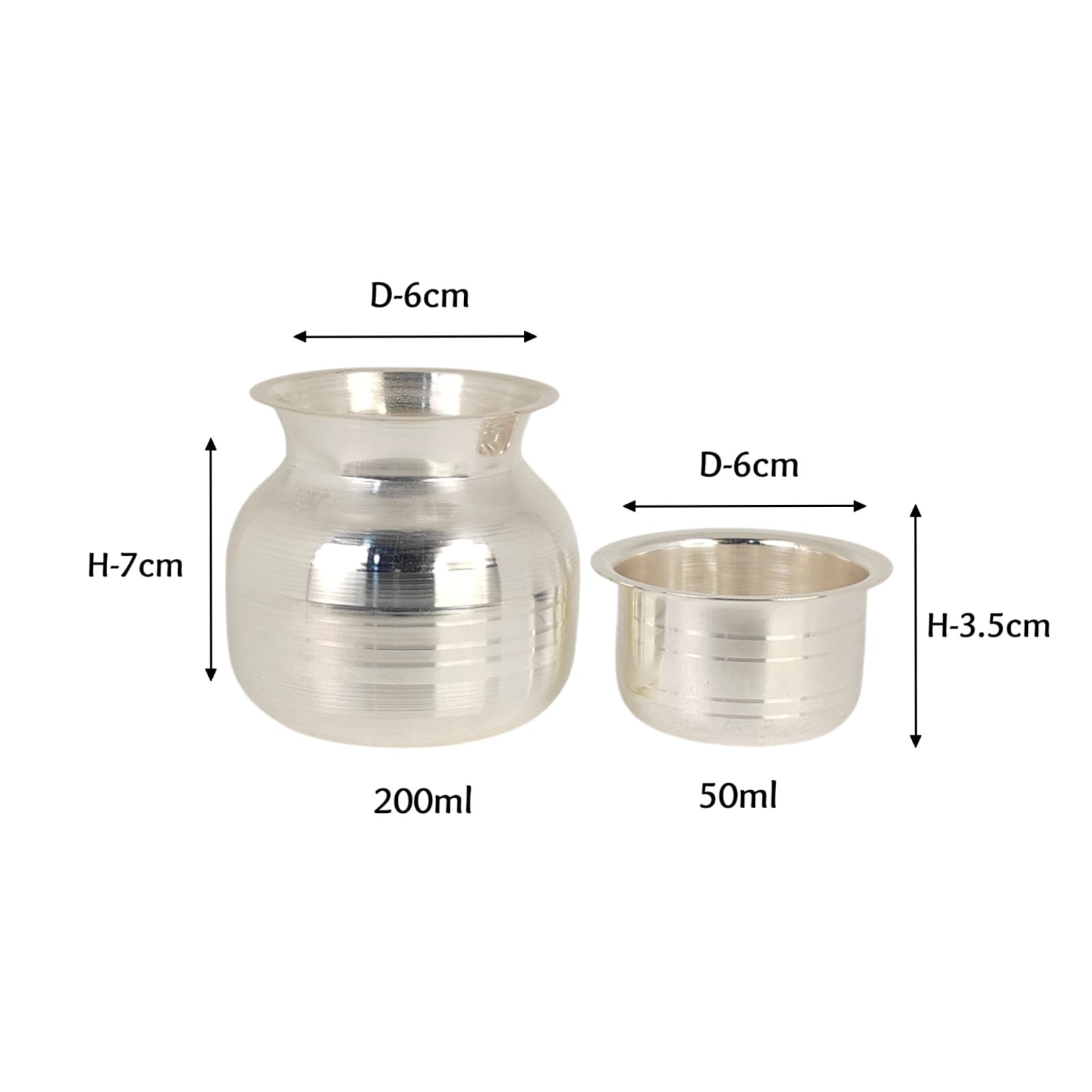 SS Silver Coating Pooja lotti Pyala 200ml + 50ml MM2194