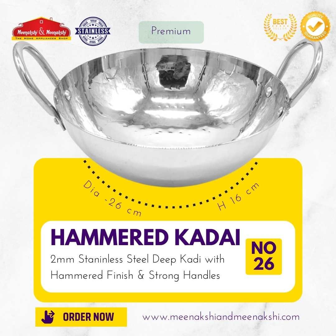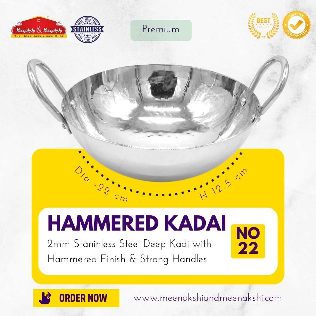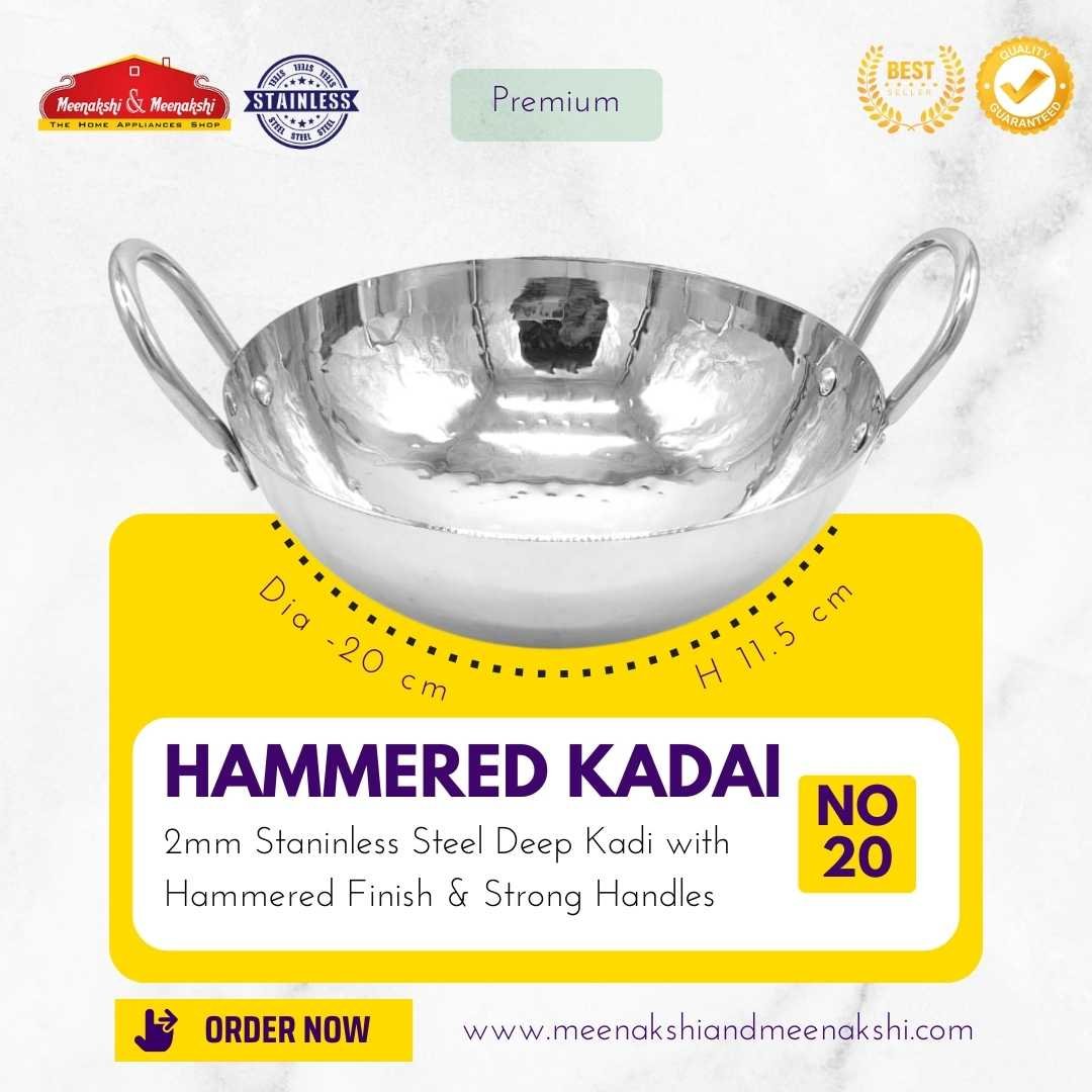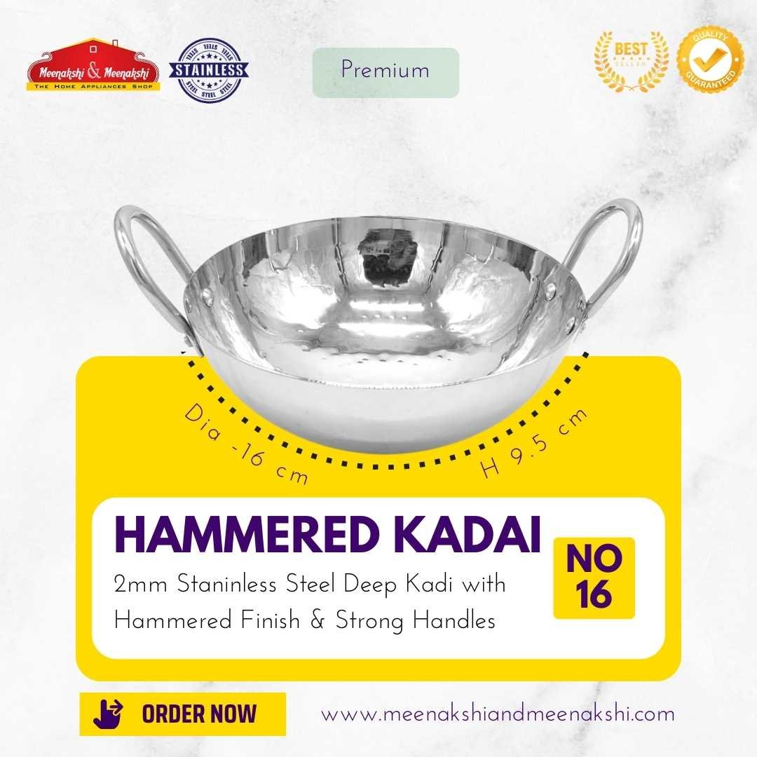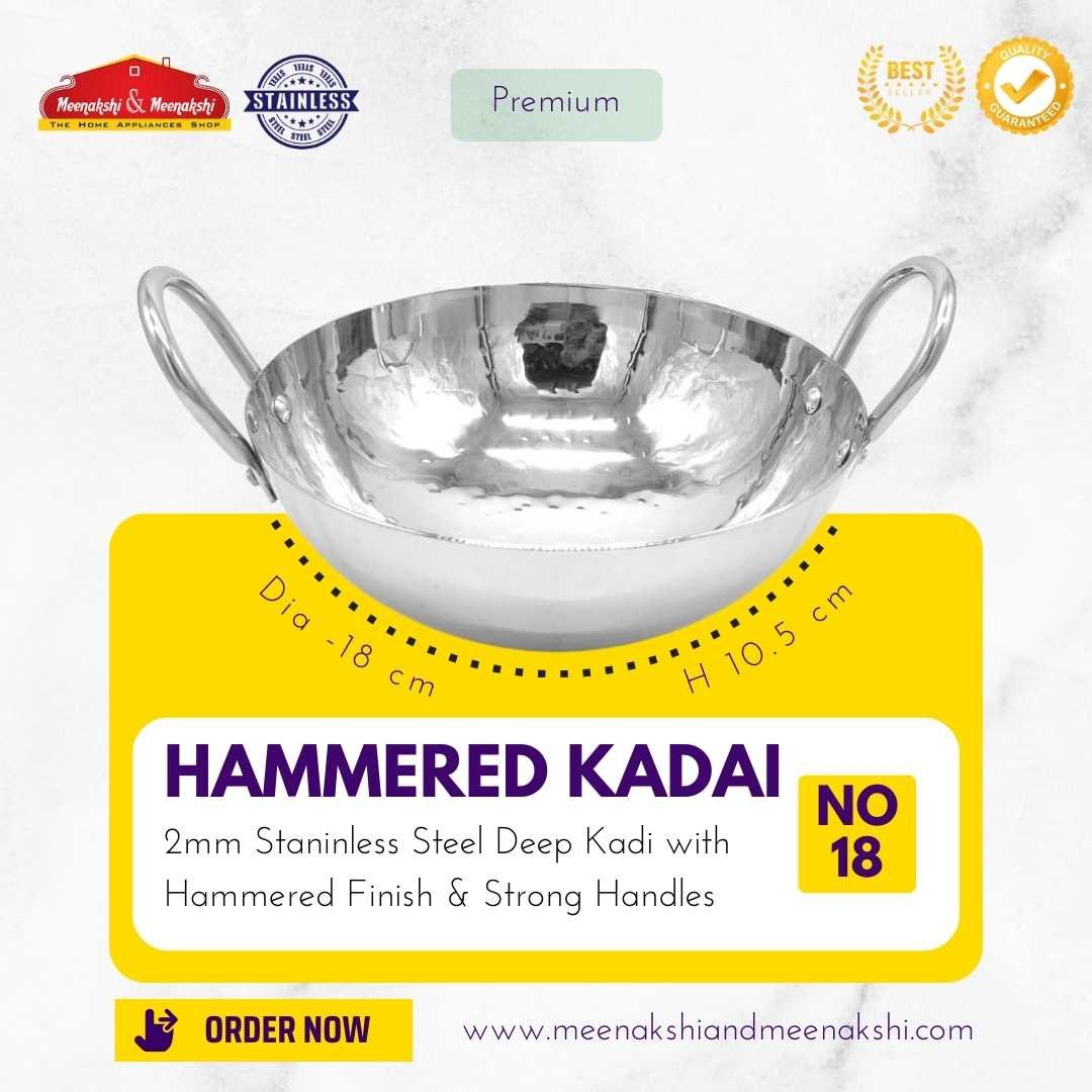 The 2mm Traditional Hammered Kadai has a heavy base and is made up of high-quality stainless steel which makes cooking easy and efficient.