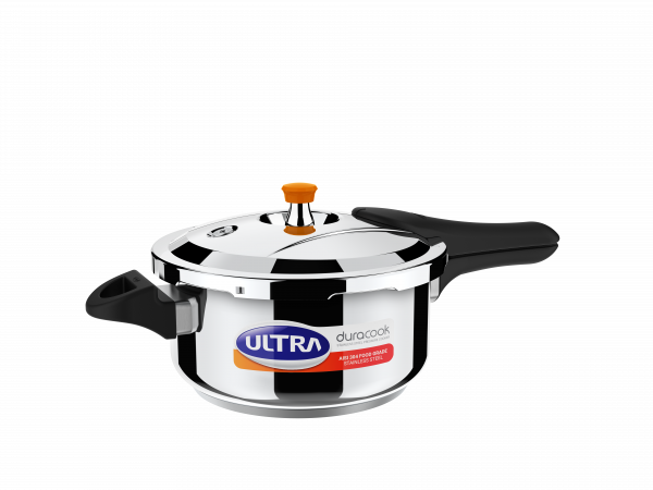 The 2L Ultra duracook pressure cooker is made of AISI 304 food grade stainless steel and hence ensures rust free healthy food. The high-impact bonded 3 layer composite base enables even distribution of heat through the bottom and aids uniform cooking without any burning or charring. The cooking time is also much less than in other regular cookers. The heat-resistant & heavy solid bakelite handles with twin screws ensures that handles do not become loose. Healthy and fast cooking, durability are good reasons to upgrade to an Ultra duracook stainless steel pressure cooker.