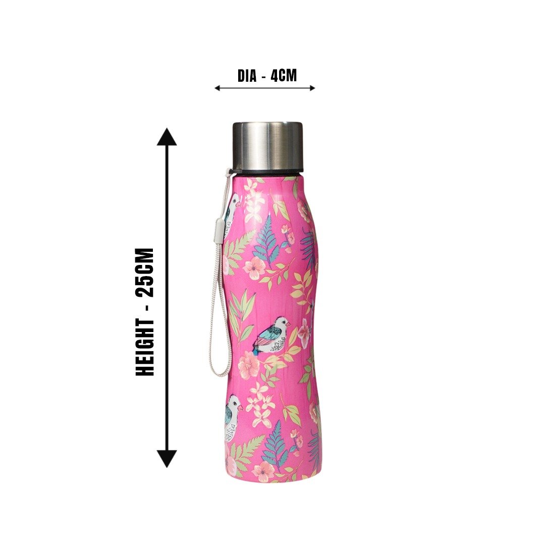 TAG HILLS Thunder Printed Water Bottle Rose with Bird 800ml MM3444
