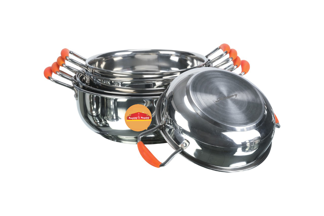 * Steel handles with Silicon grip for heat resistance handling