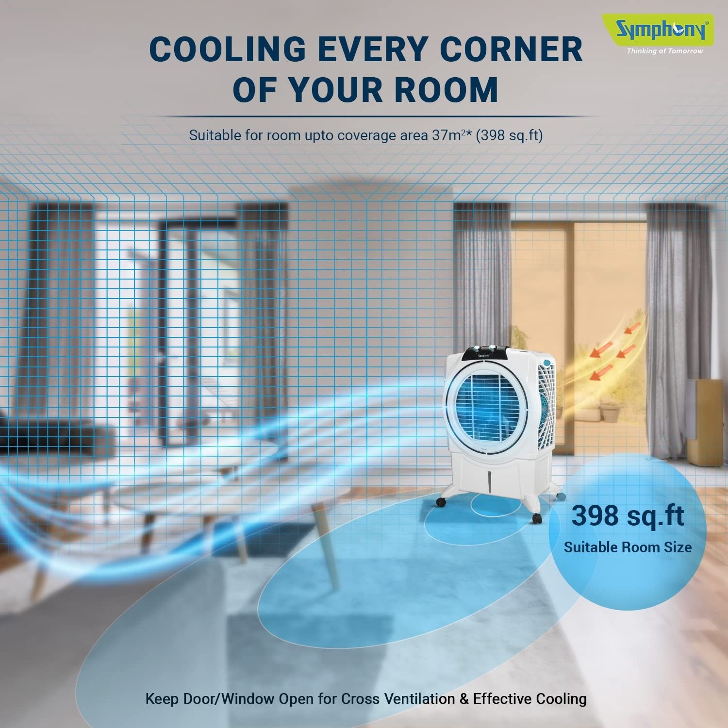 Coverage: The air cooler is appropriate for rooms up to an area of 37 square meters under optimal conditions.