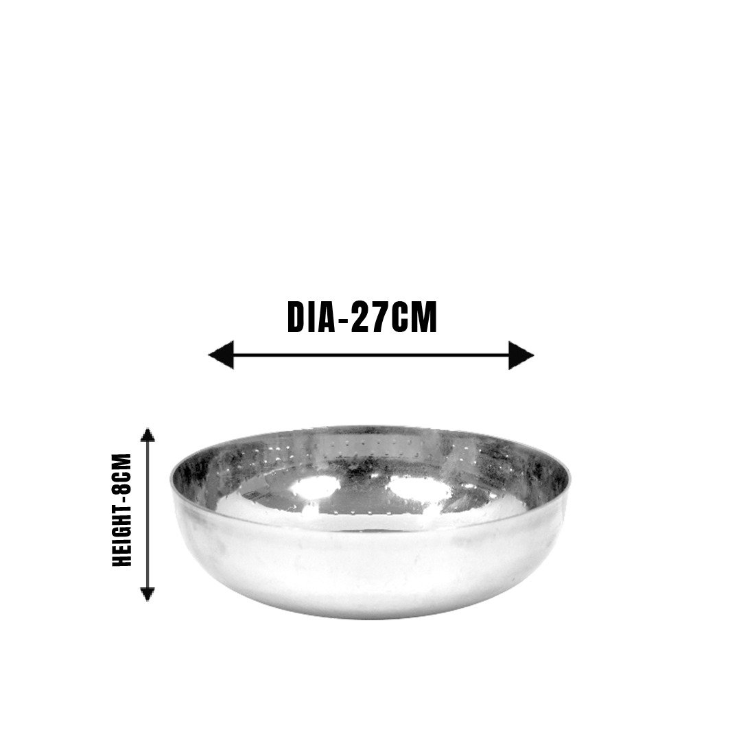 This Tasla combines elegance with utility. Crafted from food-grade stainless steel, it features a durable construction with a traditional hammered design, making it ideal for kneading dough, mixing ingredients, or serving large portions of food. Its wide surface and deep design offer great versatility for both domestic and commercial kitchens.
