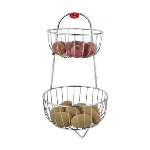 [STURDY & VENTILATED DESIGN]: The wire frame helps fruits and vegetables stay fresh with air circulation. The stainless steel material is nickel-chrome finished, BPA-free and rust-resistant with round feet to stabilize the basket., [VERSATILE USE]: This Unify basket is perfect for all your produce: apples, pears, lemons, limes, grapefruit, kiwis, bananas and other fruits in convenient countertop food storage. Alternatively, use your fruit baskets for vegetables or bread.