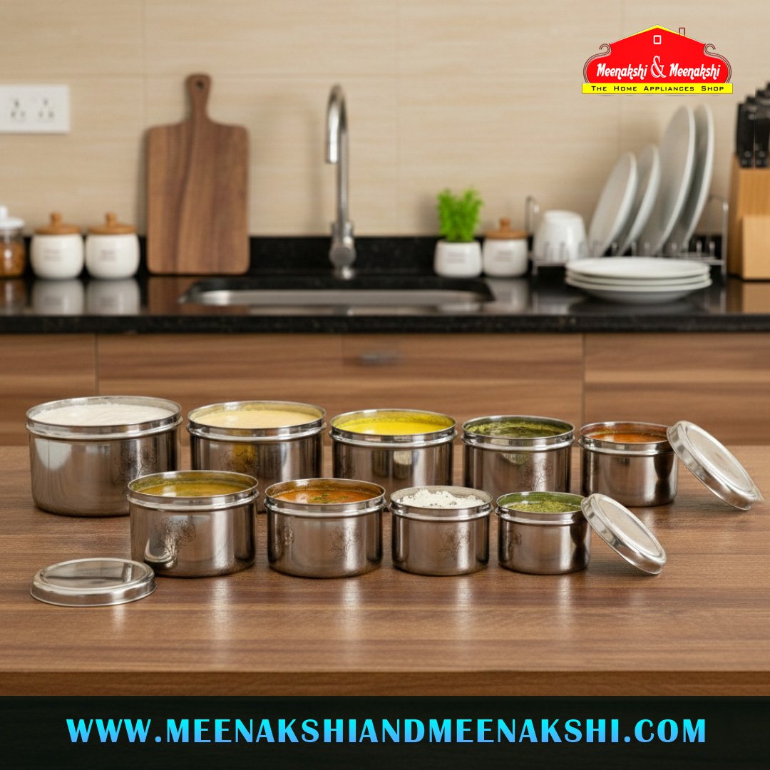 Dabba No-3: Capacity - 1000ml, Height - 9.5cm, Dia - 13.5cm.