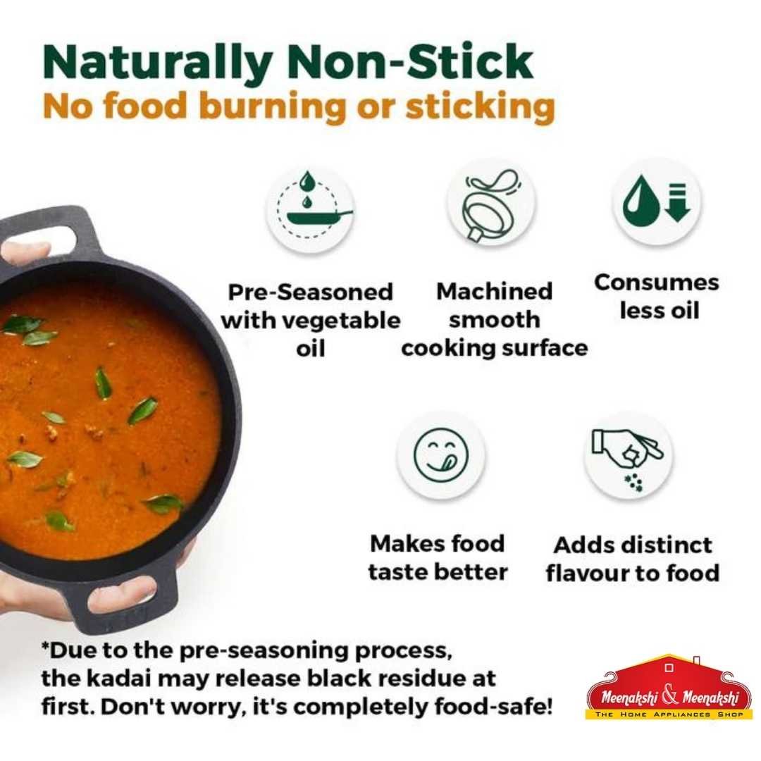 MAINTENANCE- Always store in a clean, dry place. After use, cookware must be dried well. (always best to reheat it till all the moisture evaporates.) For maintaining seasoning; rub a bit of oil on the cookware, once it's completely dry. Avoid contact with moisture. Use gentle scrubs, cleansers, and spatulas/ladles.