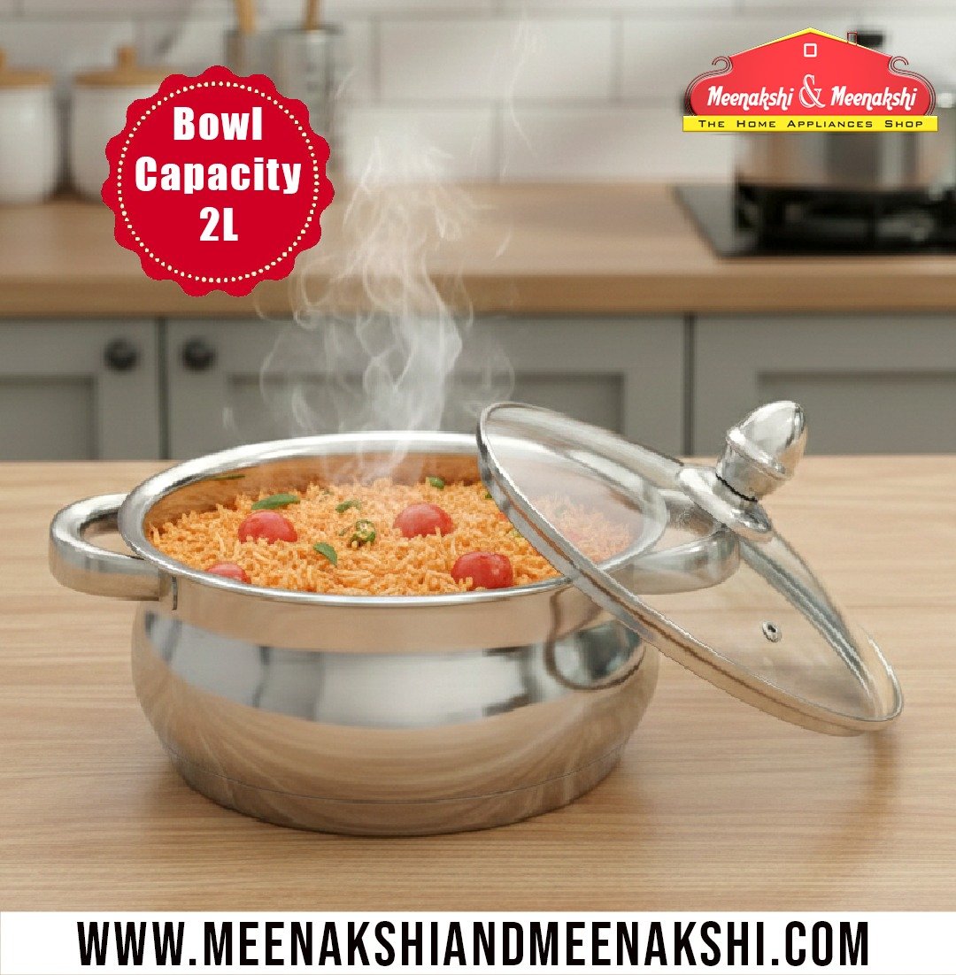 Belly Pot : Capacity - 2L, Height - 10cm, Dia - 17.5cm, Weight - 715g.