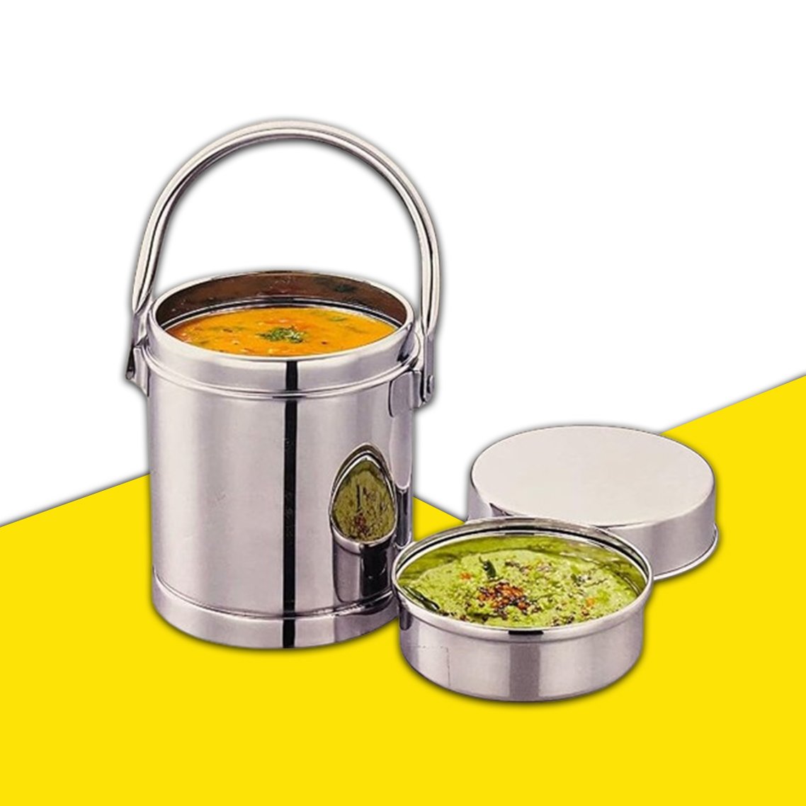 Compact 2 in 1 Thukku is very useful for Storing Namkeens and Sweets, refrigrating or buying Dal, Chutney, Sambhar and other food with convenience and easy to carry. Ideal Solution for Everyday Use.