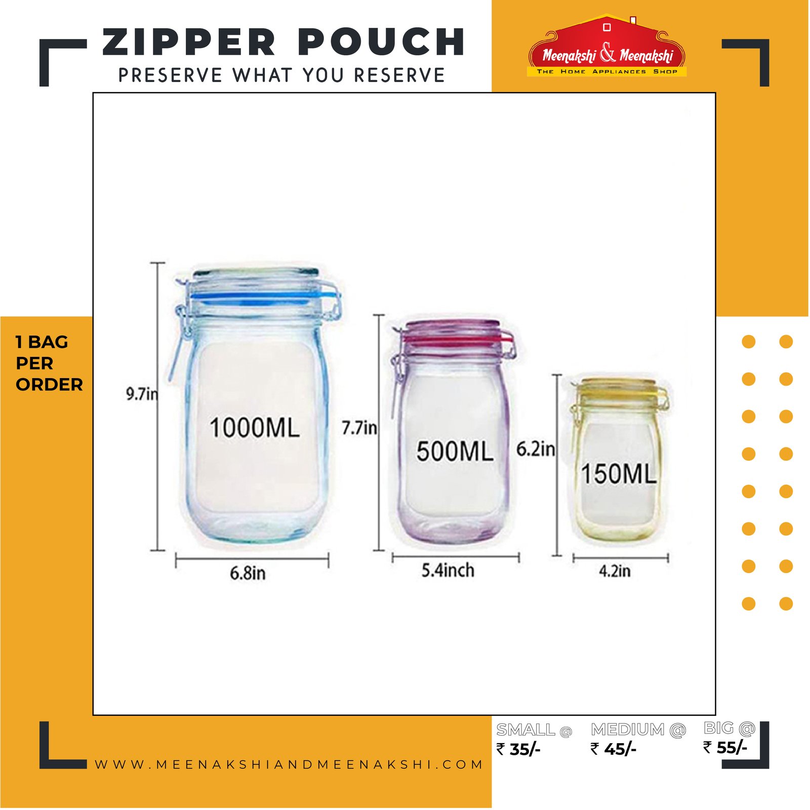 - Jar-shaped pouch with Zipper is made of high-quality 100% food-grade material which always gives you an extra bit of utility.