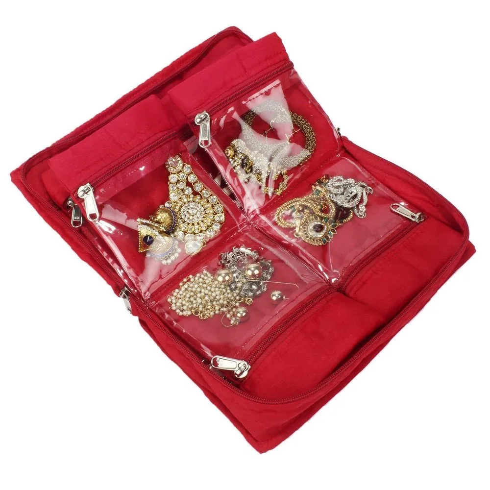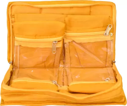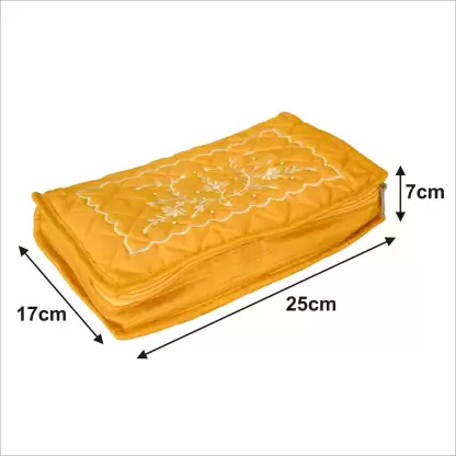 Jewellery box in heavy cotton material. 2 Large and 4 small pockets are there in large box with two extra pocket and pockets are inseparable. This is an exclusive item in which you can keep all industries brings products for every woman who dreams of being unique and stylish. We offers incomparable range of handbags and jewellery boxes for women. Our products are incomparable in terms of quality.