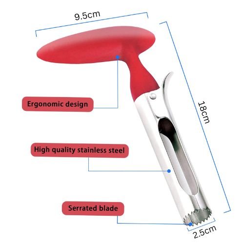 Ergonomic handle to effortlessly twists or push corer through the apple