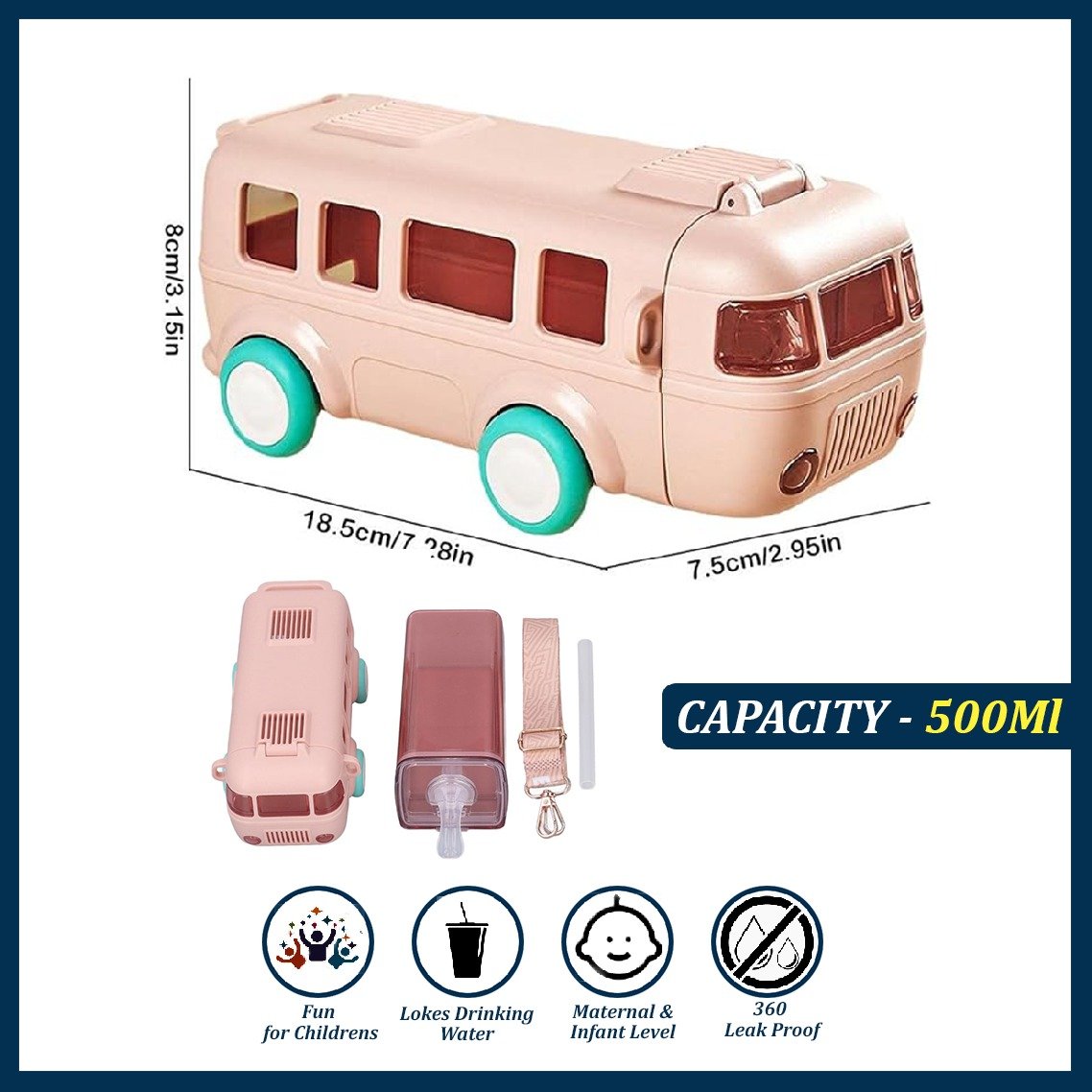 TOY BUS WATER BOTTLE: cute water bottle with straw is not just a water bottle, but also a toy with wheels that can turn When carried on the body.