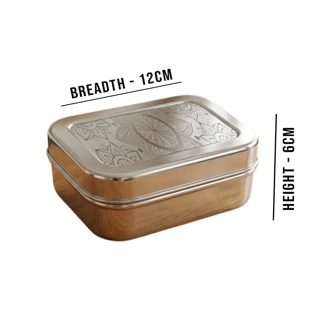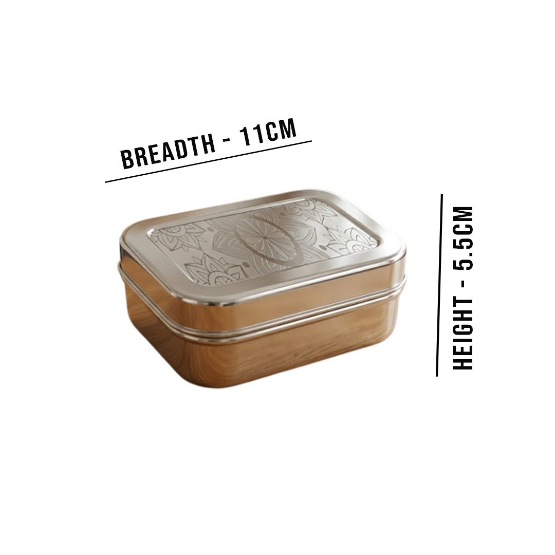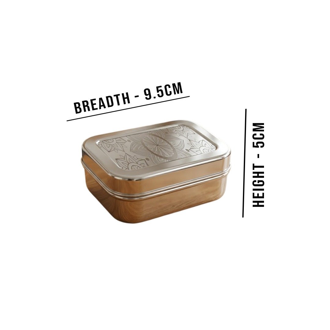 Rangoli Dabbi No.2 : Capacity - 350ml, Height - 5.5cm, Breadth - 11cm.