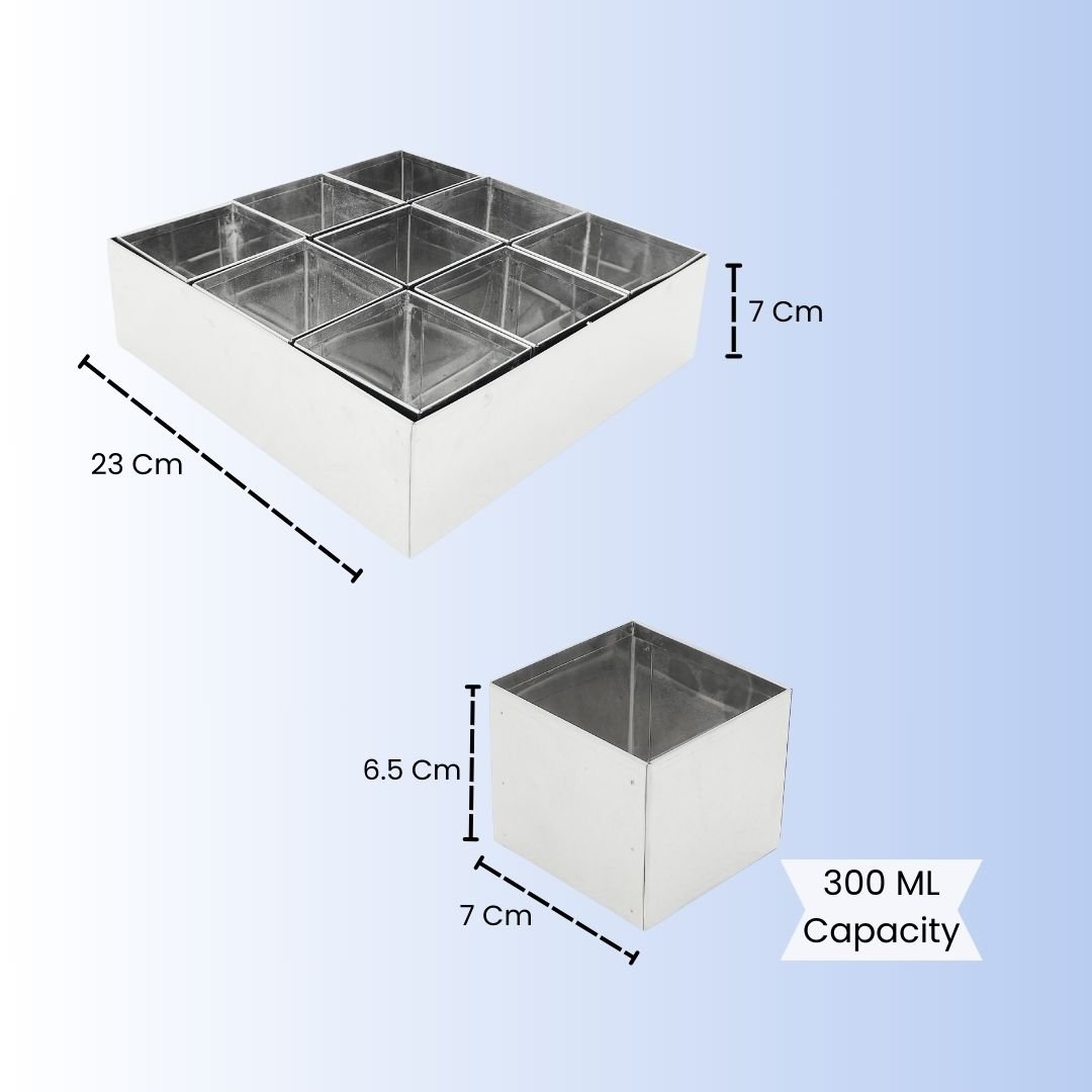 9 Partition masala box is an aesthetically designed kitchenware to store all your essential cooking spices. Its unique tree design lasered Square Shape