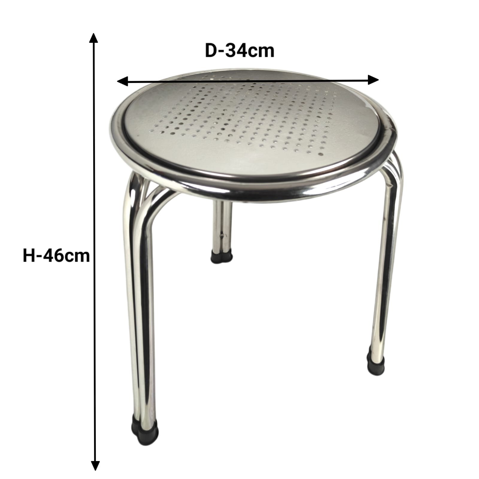 This compact and durable stainless steel perforated stool combines modern design with functionality, making it a versatile addition to any space.