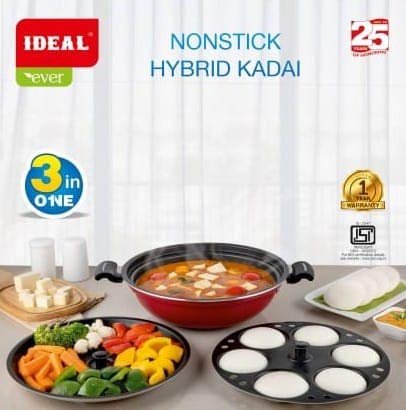 Ideal Non Stick Cookware Hybrid KadaiI 3 in 1 Multi Purpose with Lid