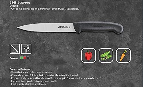 - CONICALLY GROUND: The knife is conically ground on full length and crosswise blade for easy and effortless carving and peeling. Also the knife comes in 3 color handle - Red,Green,Black. Whatever job you give it gives smooth, uniform cuts . This household knife will result in dishes that are as beautiful as they are nutritious. Ideal for intricate work like slicing, trimming, carving bar tender, preparing garnish and peeling