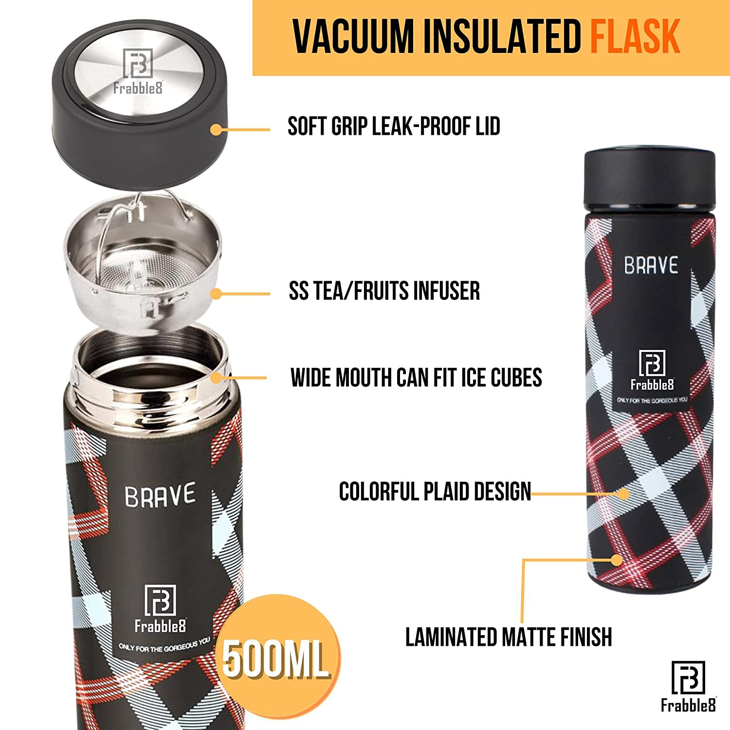 STORE OR CARRY : Our stylish Thermal vaccum frabble Cup Flask Keeps Your Favourite Drink hot and cold for Hours . Fill Anything and Carry anywhere Handle 0.5 Litre of Beverage . Stainless Steel Mesh Filter Comes with in this set of tumbler