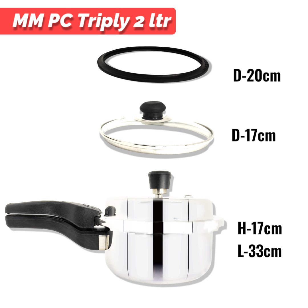 Experience the ultimate in cooking efficiency with our 2 Litre Triply Pressure Cooker. Engineered for safety and performance, this pressure cooker features a robust tri-ply construction that combines layers of stainless steel and aluminum for exceptional heat distribution and durability.