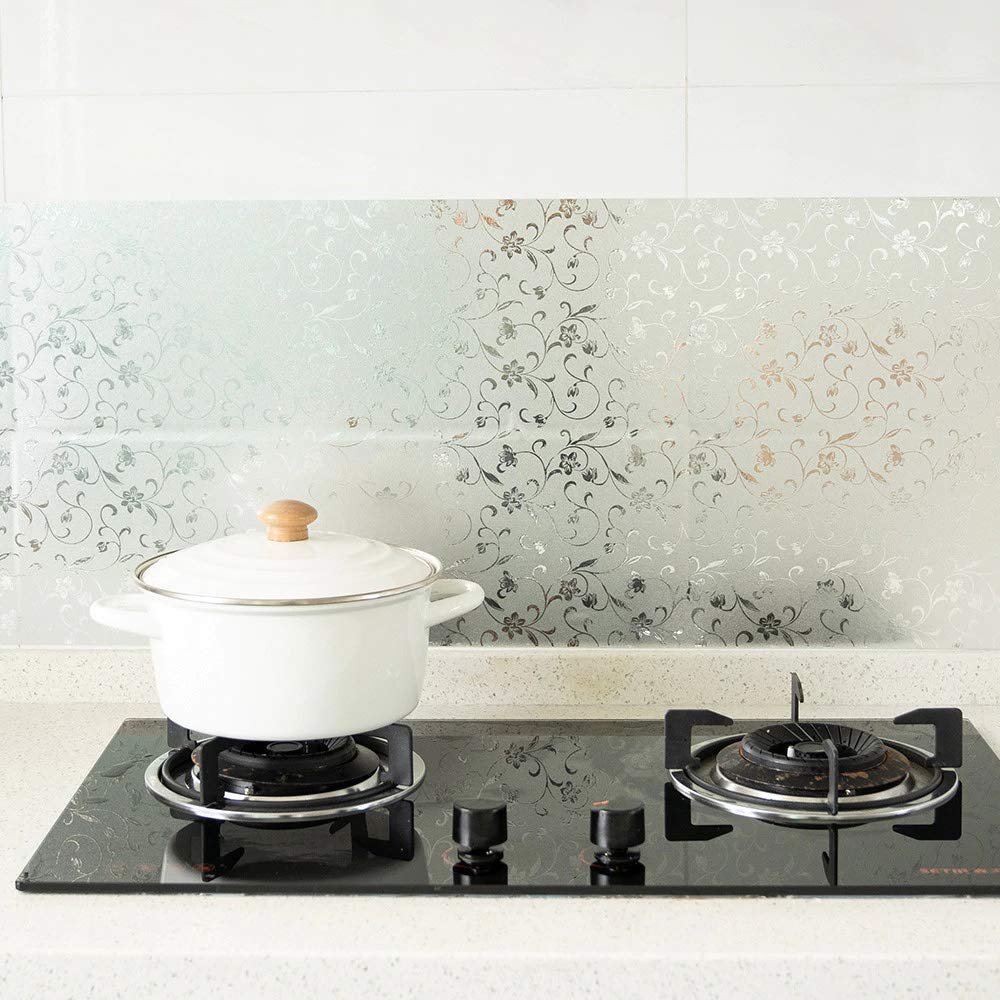 Aluminum Foil Sticker Silver Color Flower Design 60 cm x 3m