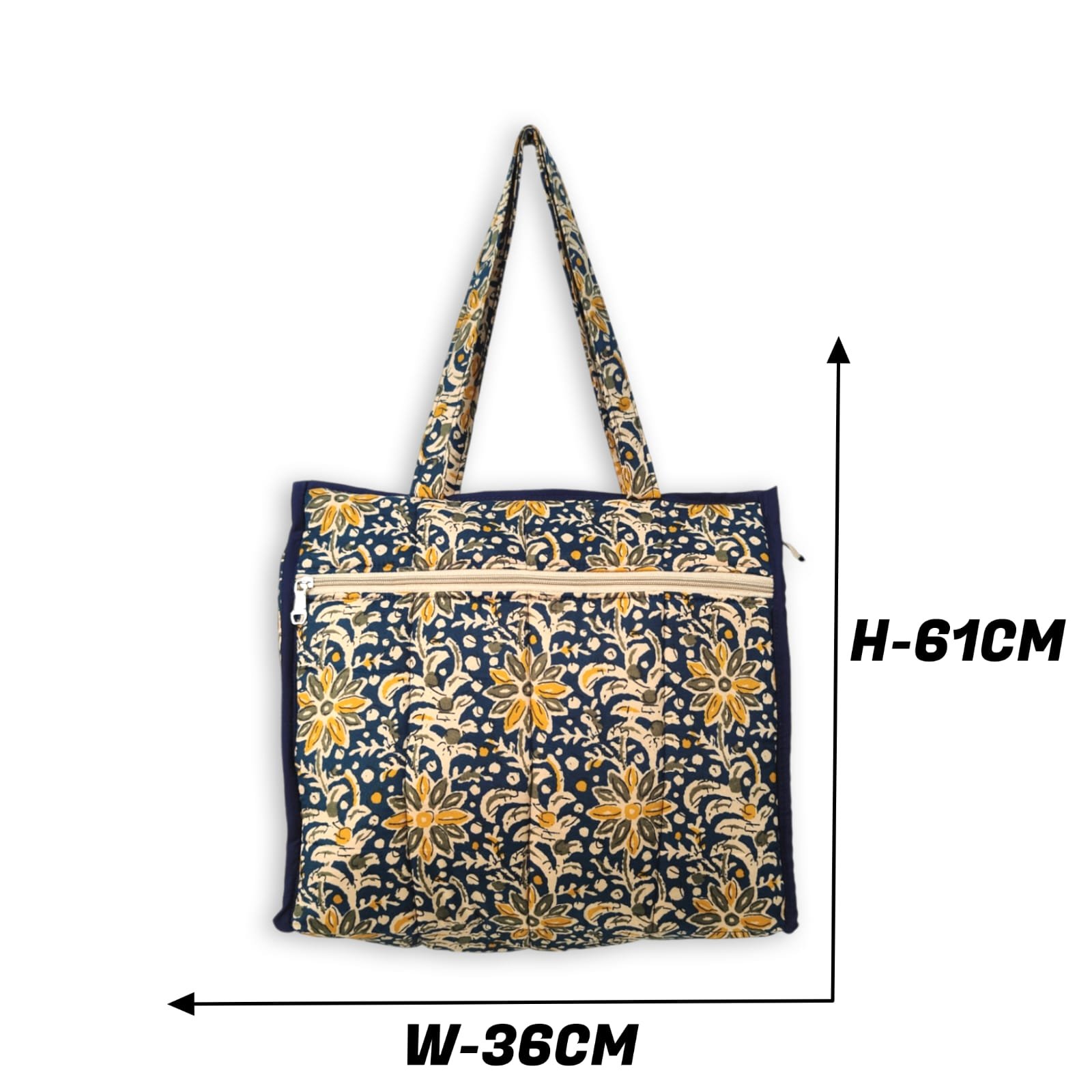 The main compartment is spacious enough for larger items like a tablet, books, or even a light sweater, while the additional zippered pockets keep smaller belongings easily accessible and secure. Comfortable double straps allow for effortless carrying, whether you wear it over your shoulder or hold it by hand.
