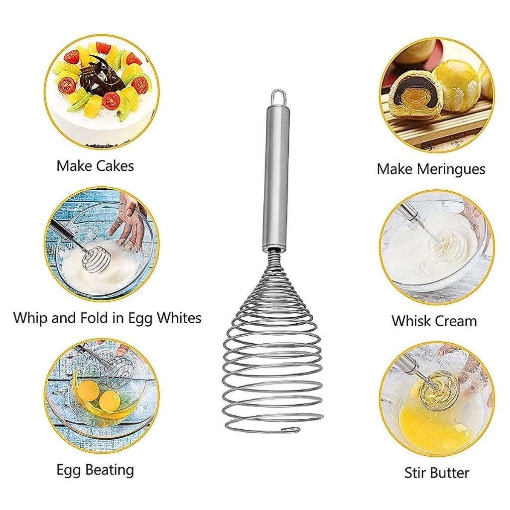 A must Kitchen Utensils for Blending, Whisking, Beating & Stirring.Cosy grip for easy operations make repetitive tasks like beating, whipping, churning and liquidizing easy made from stainless steel easy to maintain and clean. And It is easy to use and carry. Multipurpose Stainless Steel Wire Spiral Whisk. Ideal for mixing eggs, sauces, topping and also icing sugar mixture and melted chocolate fresh cream.