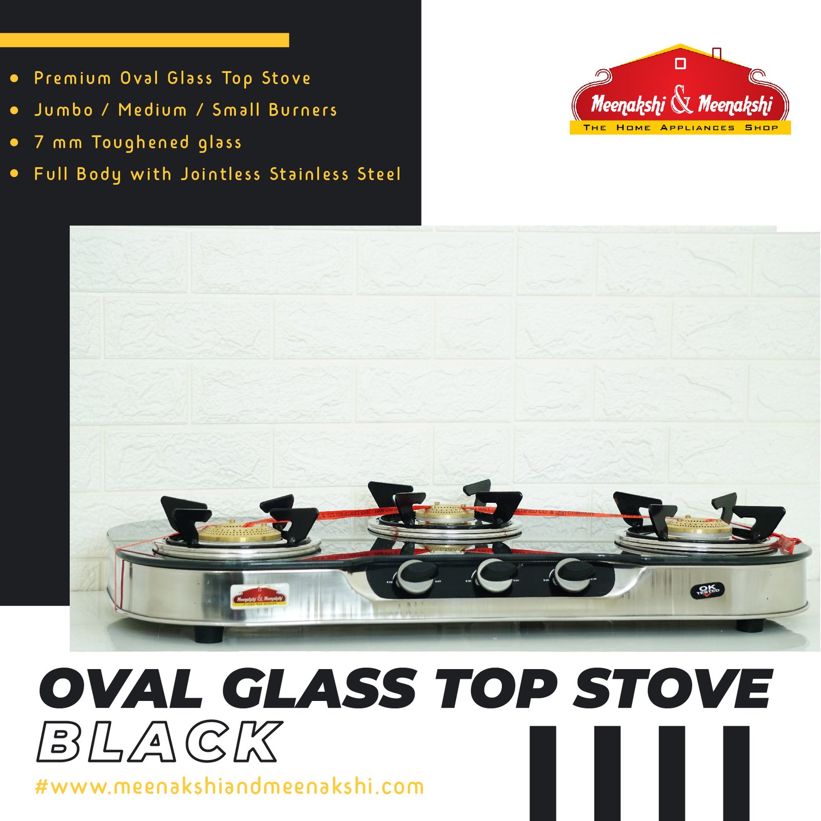 3 burner Premium Glass Top Stove