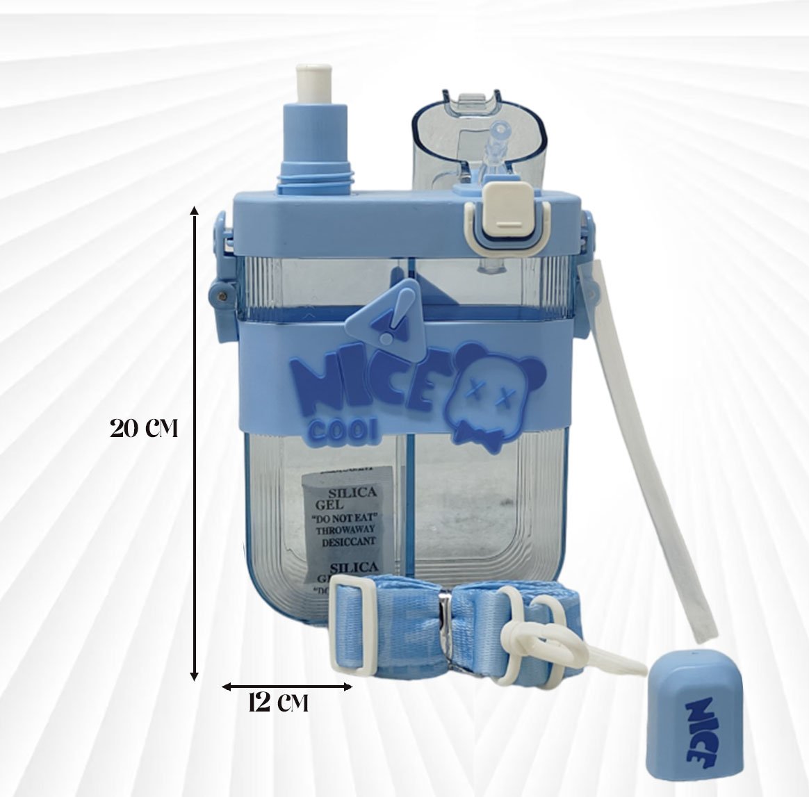 HIGH QUALITY & LARGE CAPACITY : 300ml+300ml ml Kid Water bottle with strap is made of odorless, high quality food grade material, this cute water bottle is perfect for your daily drinking water.