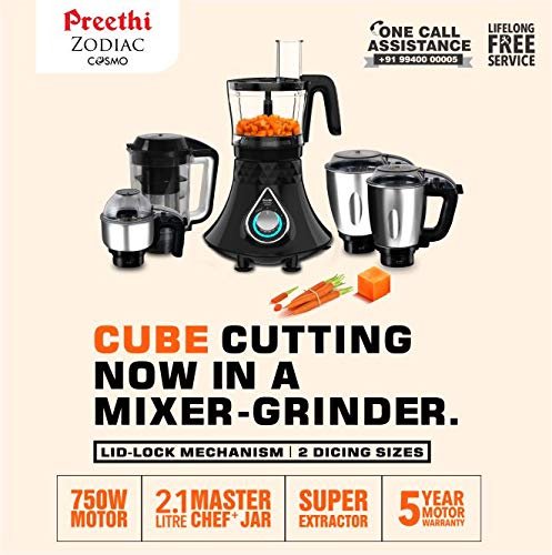 • Includes: 1 Mixer grinder, 1 Master chef + Jar, 1 1.7 Litre big jar, 1 1.0 Litre medium jar, 1 1.5 Litre super extractor and 0.5 Litre chutney jar