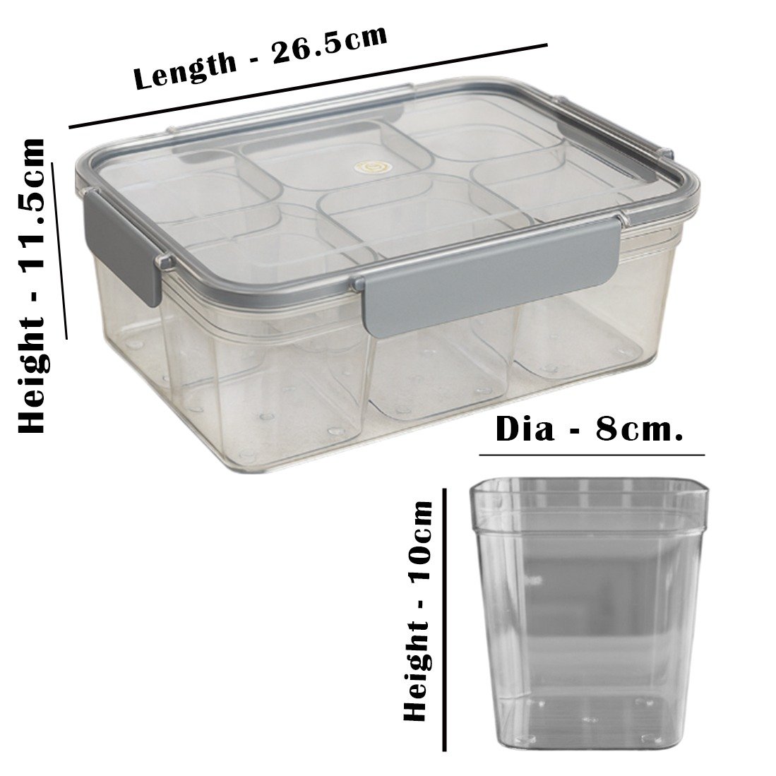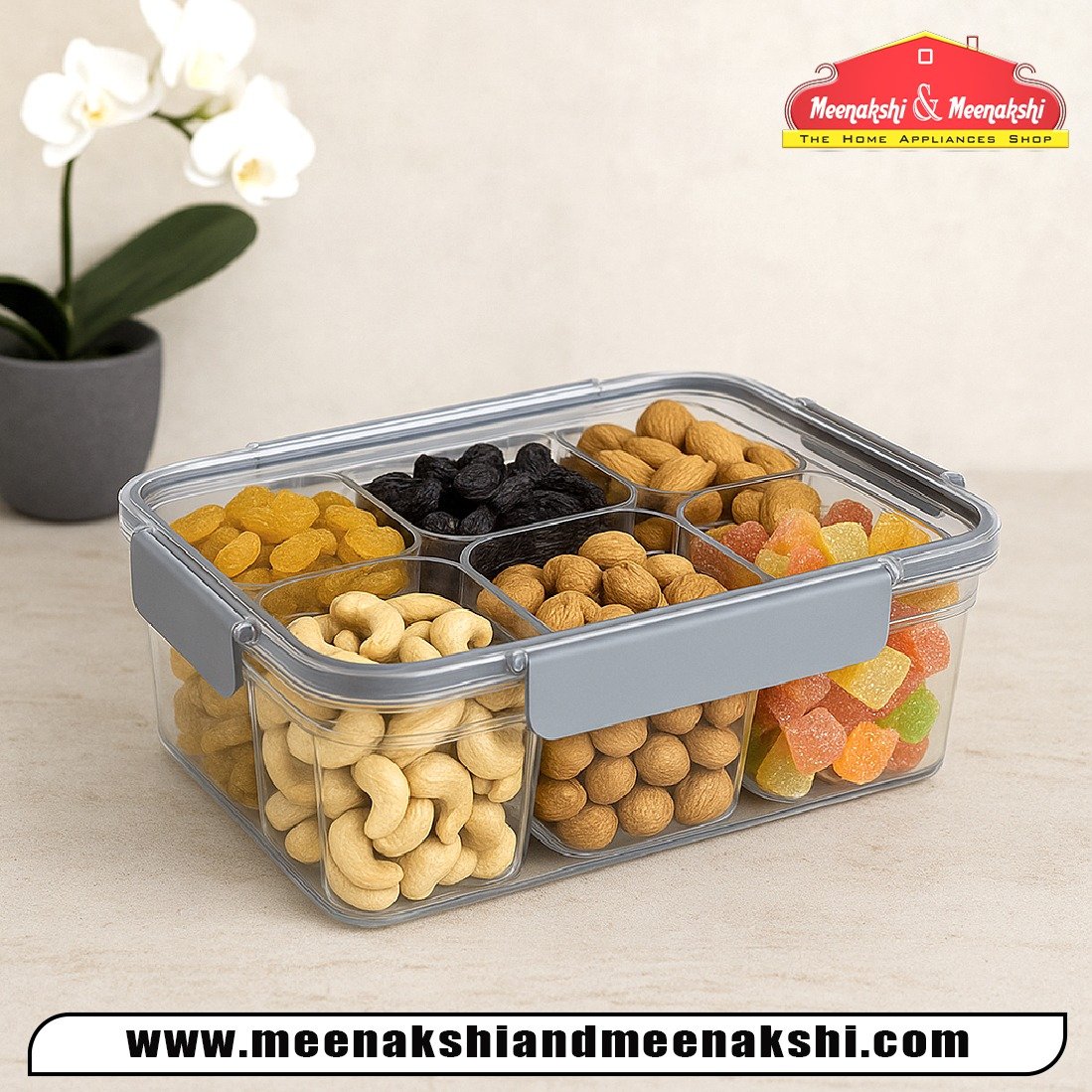 Features removable dividers for customisable compartments, perfect for organising different types of food, snacks, or craft supplies.