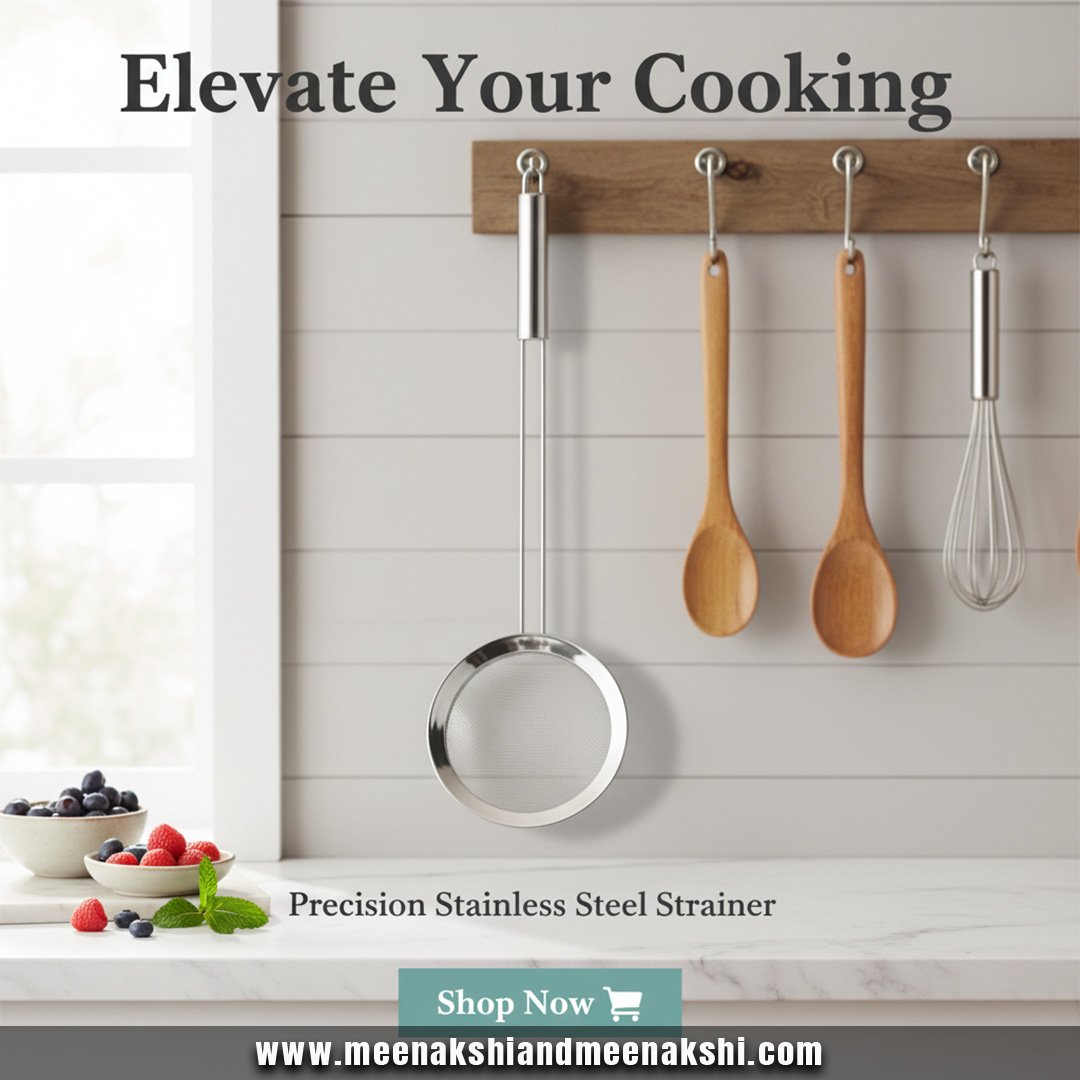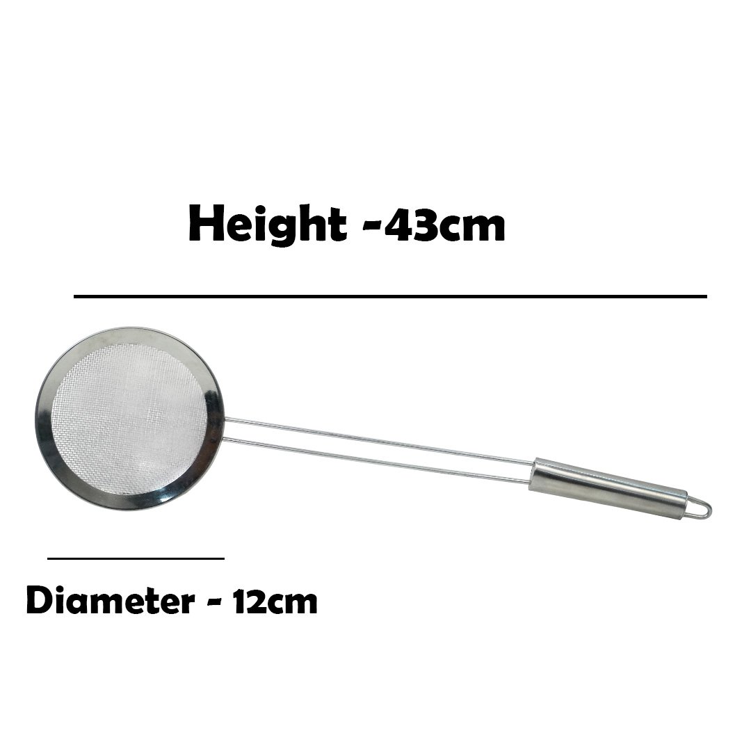 Crafted neatly from stainless steel, this Frying Skimmer features a long and sturdy handle and a fine mesh base to handle deep frying and tossing safe and hassle-free. Excellent quality steel, highly durable and will last for a lifetime. Heavy mesh with long handle for preventing the hands from hot oil spurts and easy grip. And a hook at the end to fit well in any kitchen organizers.