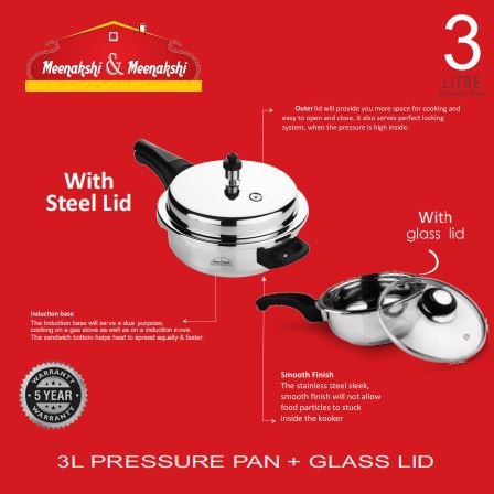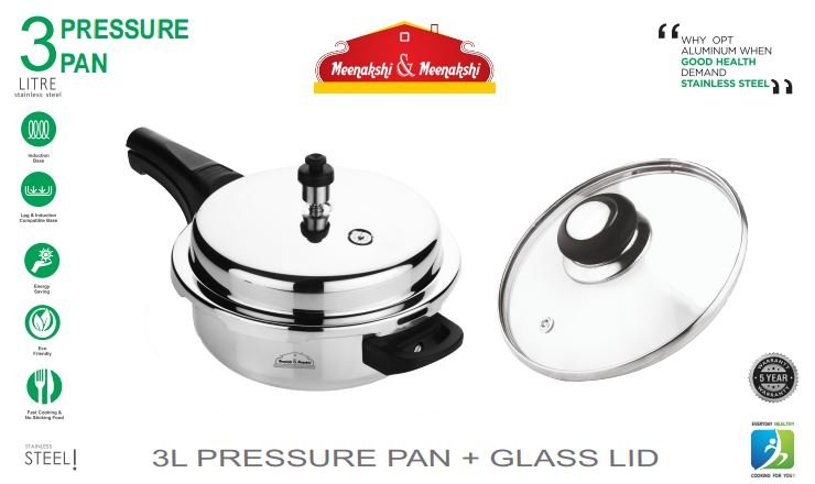 MM SS 3L Pressure Pan with Glass Lid Sandwich Bottom Tech