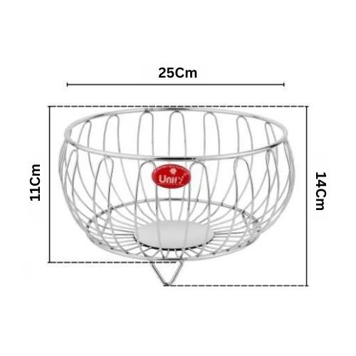 [STURDY & VENTILATED DESIGN]: The wire frame helps fruits and vegetables stay fresh with air circulation. The stainless steel material is nickel-chrome finished, BPA-free and rust-resistant with round feet to stabilize the basket., [VERSATILE USE]: This Unify basket is perfect for all your produce: apples, pears, lemons, limes, grapefruit, kiwis, bananas and other fruits in convenient countertop food storage. Alternatively, use your fruit baskets for vegetables or bread.