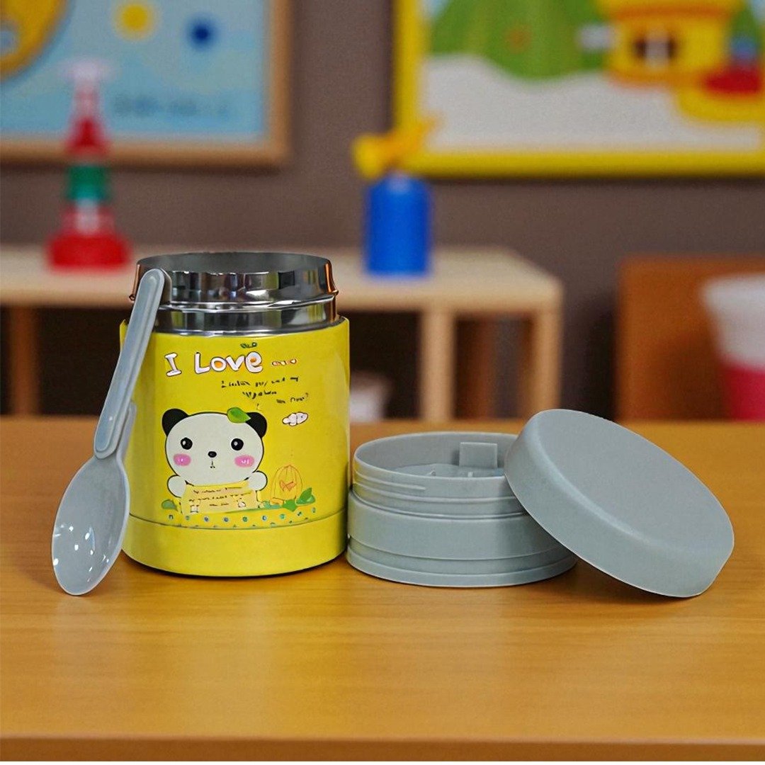 MM SS Food Jar With Spoon 380ml Yellow with Grey Panda MM3426
