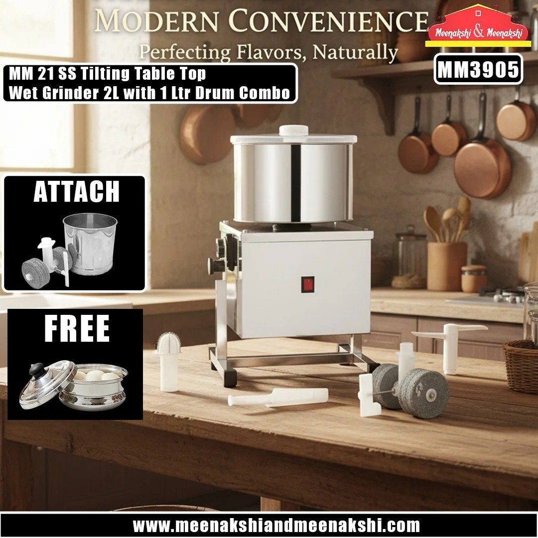 MM 21 SS Tilting Table Top Wet Grinder 2L with 1 Ltr Dr...