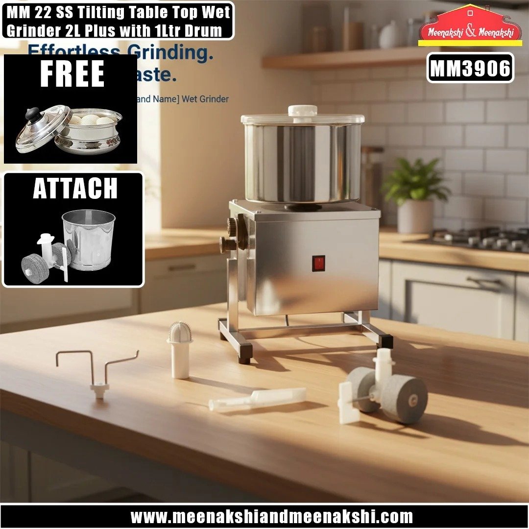 MM 22 SS Tilting Table Top Wet Grinder 2L Plus with 1Lt...