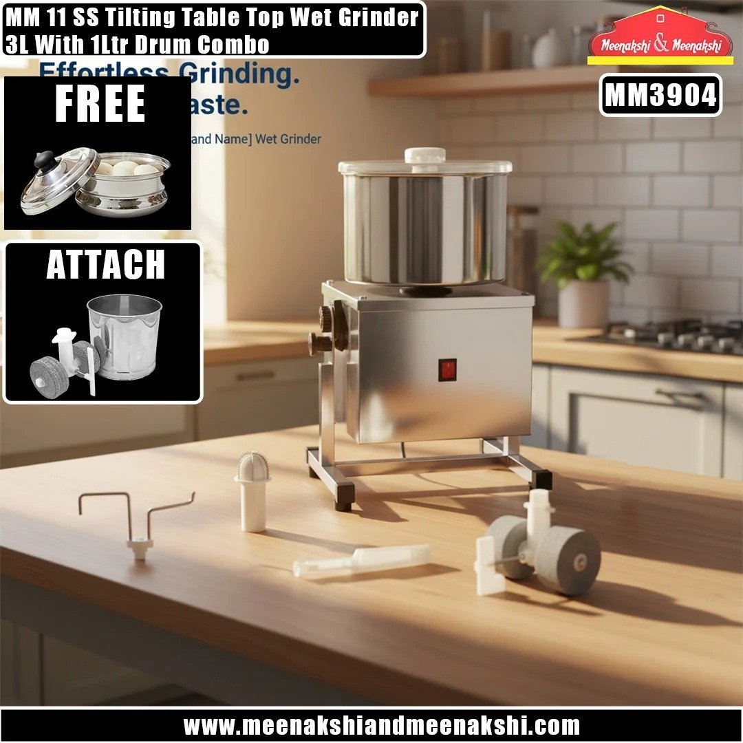 MM 11 SS Tilting Table Top Wet Grinder 3L With 1Ltr Dru...